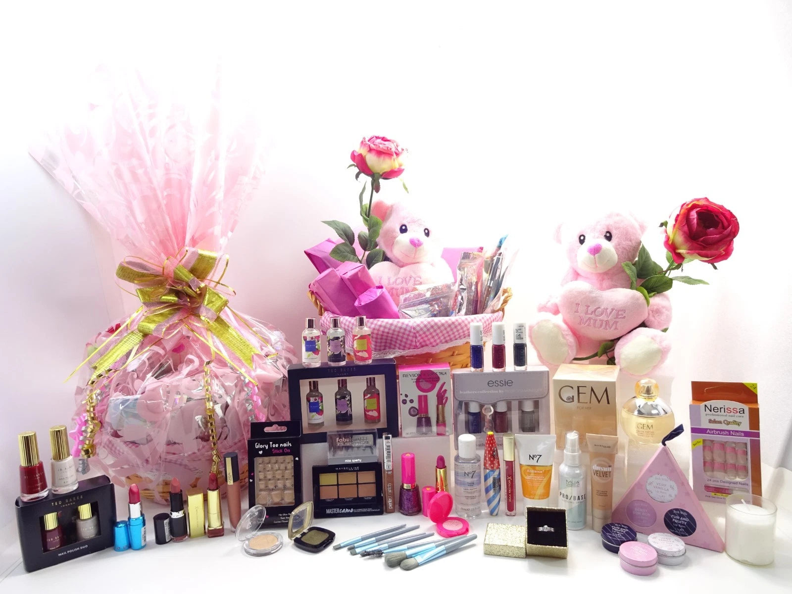 An elegant 43-piece Mother’s Day beauty hamper filled with premium makeup, fragrance, luxury nail sets and a keepsake “I Love Mum” teddy – a truly heartfelt gift designed to make her feel special.