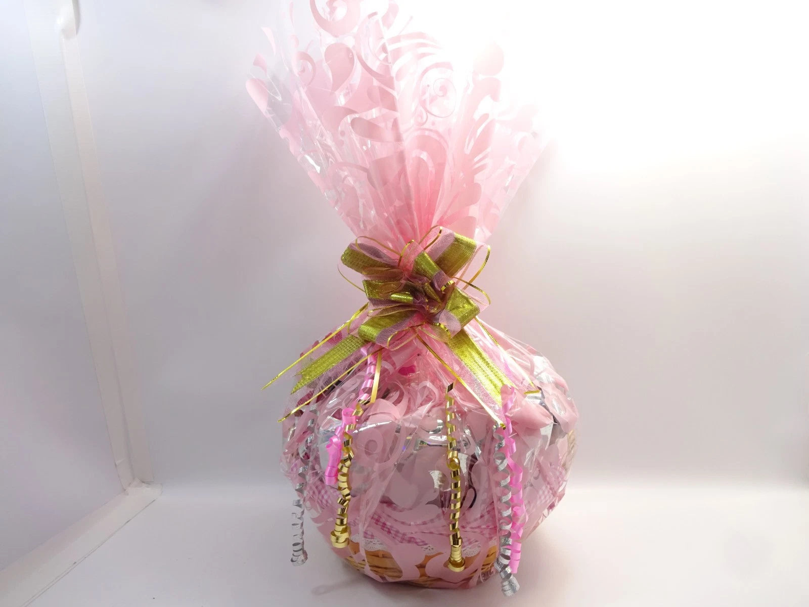 Custom crafted with care by Glory Cosmetics, this beautiful wicker basket is lined with pink gingham fabric and professionally arranged with tissue-wrapped cosmetics, fragrance and accessories for a luxurious unboxing experience.