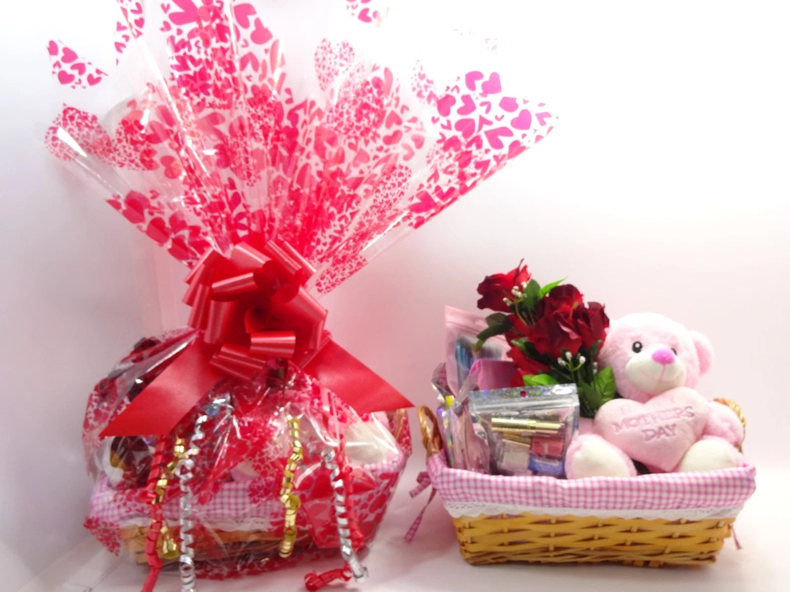 All Items Come In a Lovely Basket Wrapped In A Special Happy Mothers Day Inscribed Cellophane Gift Wrapped In Gift Hamper Finished With A Larger Bow All Items Come In Holographic Transparent Pouches , Gift Wrapped In Gift Hamper Finishing With A Large Bow.