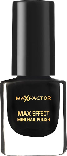 Max Factor 36 Lacquer Noir Max Effect Mini Nail Polish delivers an intense jet-black shade with a sleek glossy finish for timeless, statement-making nails.