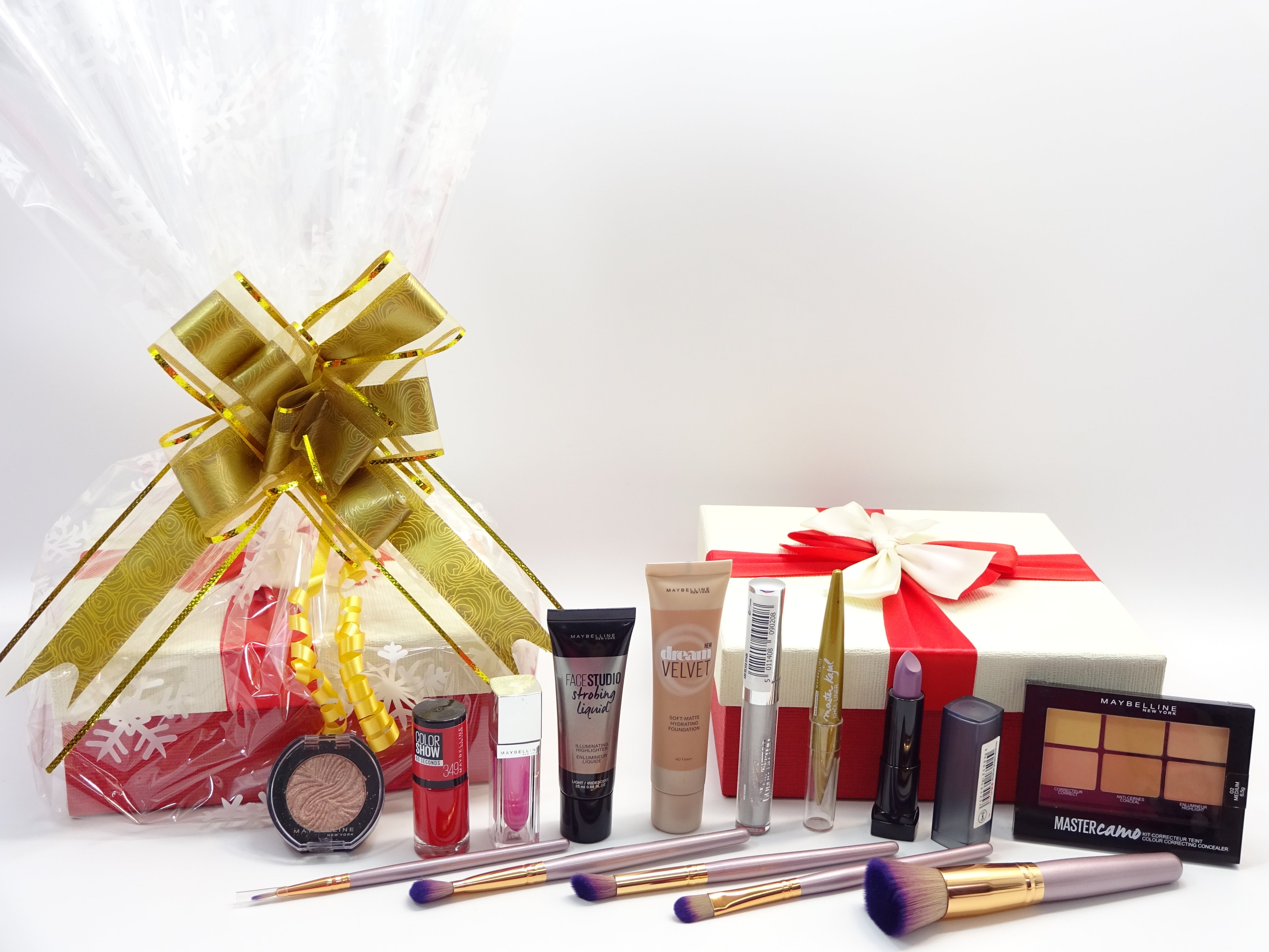 Indulge in the ultimate beauty experience with the Maybelline 9-piece makeup beauty bundle. This luxurious set includes an exclusive range of Maybelline favorites, from vibrant lipsticks to foundation, strobing liquid, and a professional kabuki brush set. Perfect for women who love to express their style and beauty effortlessly, this gift set provides all the essentials needed for a flawless look. Presented in an elegant gift box tied with a stunning red and white bow, it’s perfect for special occasions or as a thoughtful present.