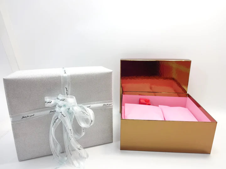 All items are neatly arranged in transparent foil pouches, professionally tissue wrapped and presented inside a red luxury gift box, then finished with silver glitter wrapping and a white "just for you" ribbon for the ultimate premium touch. A stunning ready-to-gift set that’s sure to impress.