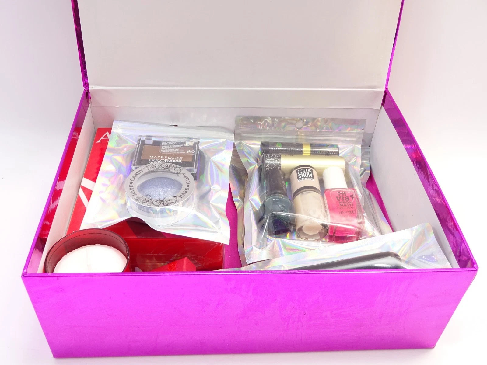 This beauty hamper includes a range of cosmetics that typically contain skin-friendly ingredients such as hydrating emollients, mineral pigments for rich colour payoff, long-lasting fragrance oils, and conditioning agents to support smooth application and comfortable wear. Skincare-based items may include nourishing botanicals and vitamin blends designed to pamper the skin while delivering beautiful results.