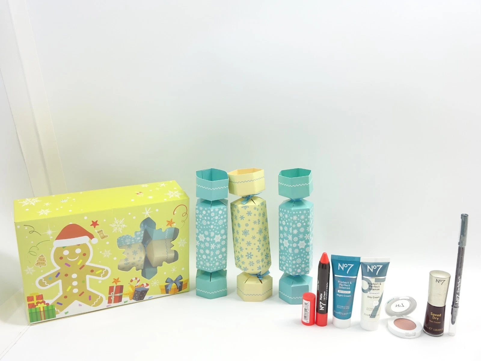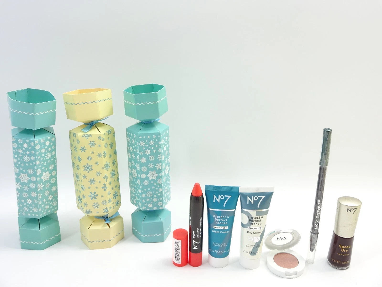 No7 Secret Santa Christmas Cracker Collection – 3 Festive Crackers with 6 Skincare & Makeup Treats Gift Set