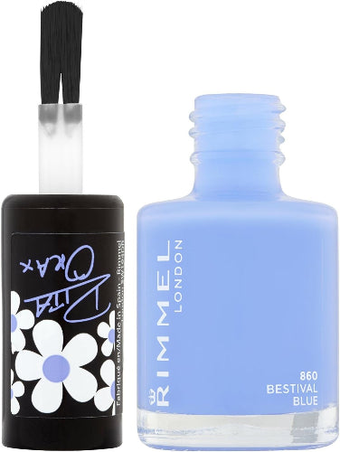Get ready to shine with Rimmel 60 Seconds Super Shine by Rita Ora 860 Bestival Blue – the ultimate pastel pop of color for nails that stand out.