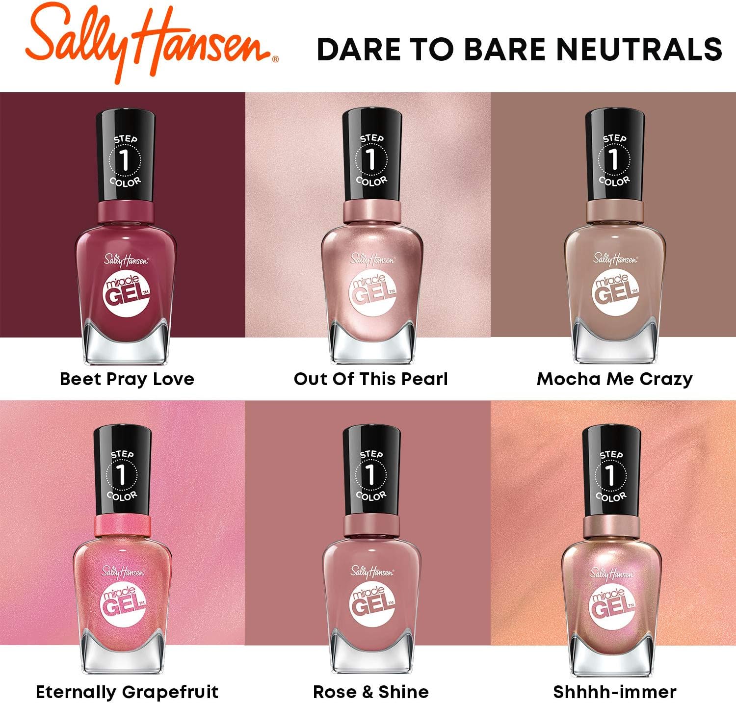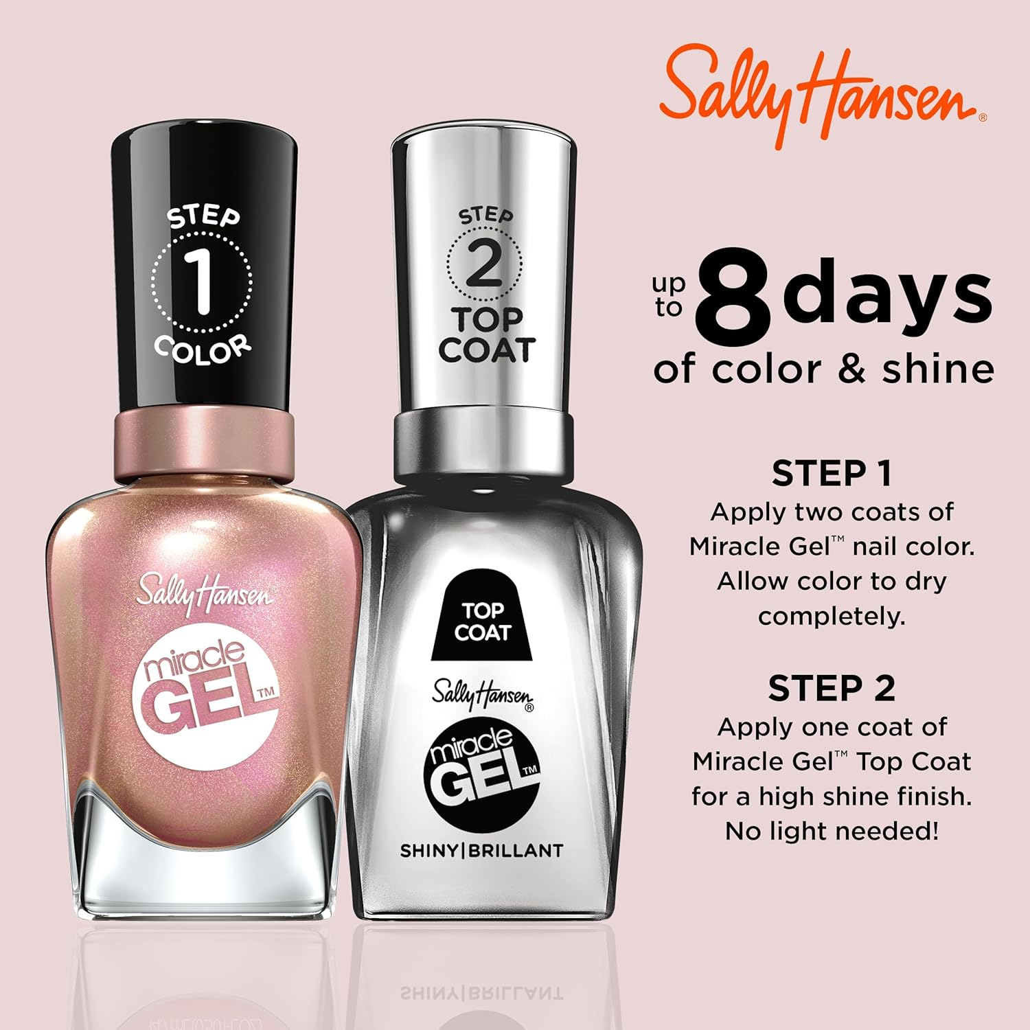 Illuminate your nails with Sally Hansen Miracle Gel Nail Polish in 174 Shhh-immer. This captivating pink-gold shade delivers a soft shimmer finish that shifts beautifully under light, offering salon-quality radiance without the need for UV lamps.