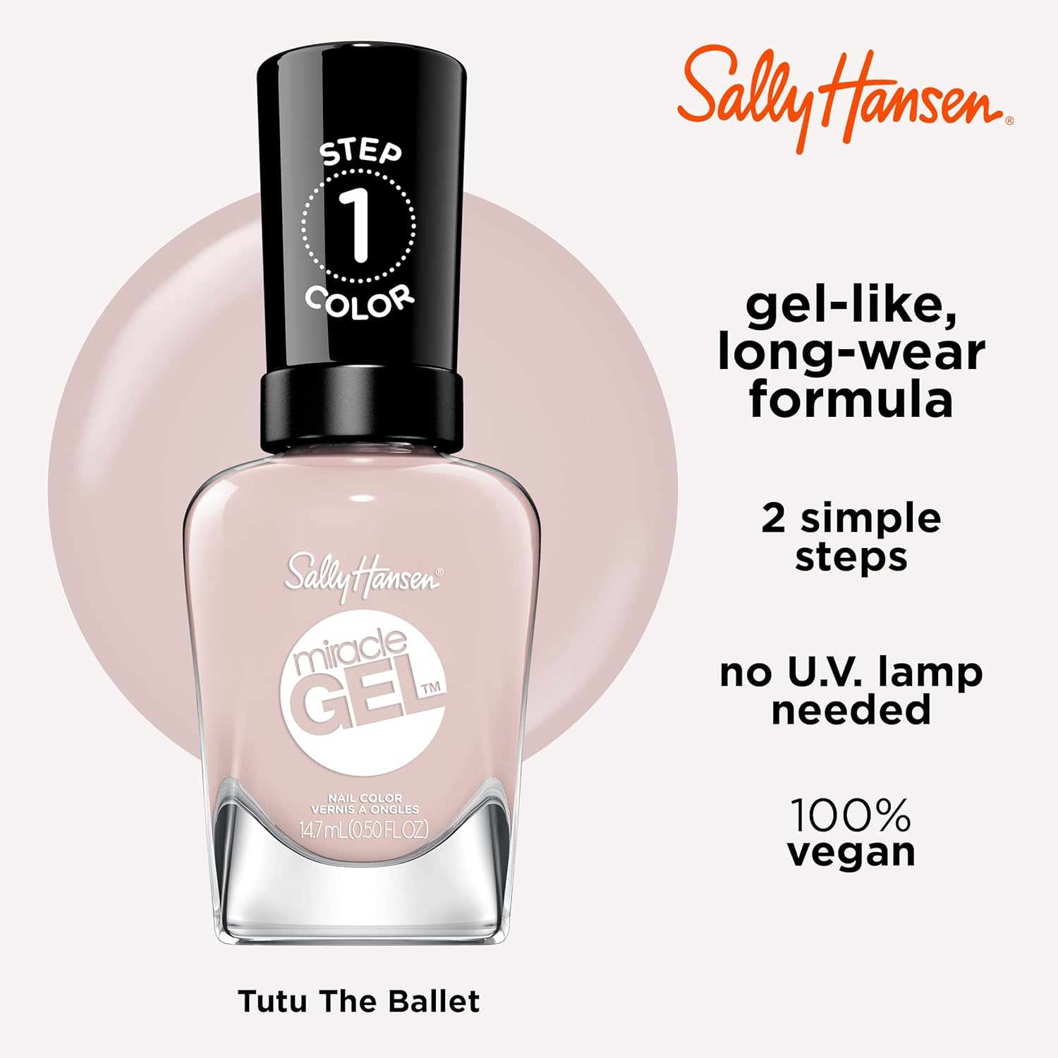 Sally Hansen 232 Tutu The Ballet Miracle Gel Nail Polish, NO UV Light Required, Chip-Resistant, Long Lasting - Up to 8 days