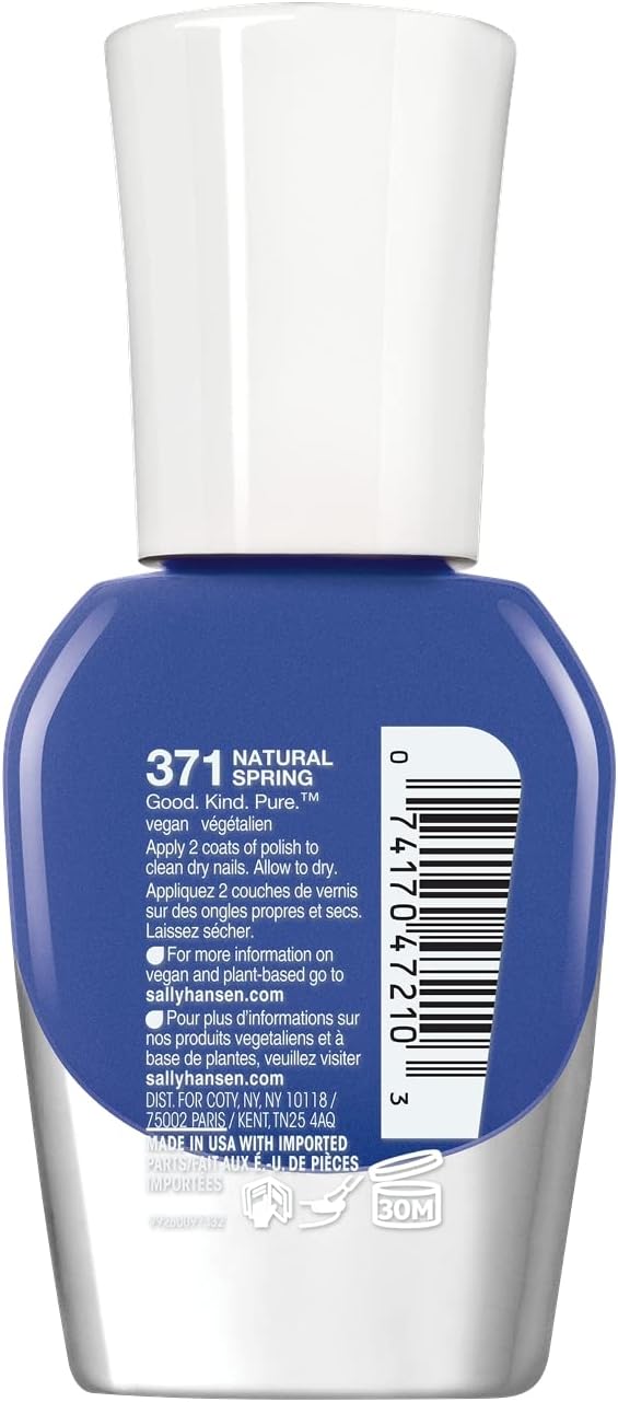 Brighten your nails with Sally Hansen Good. Kind. Pure. Nail Polish in 371 Natural Spring. This vibrant cobalt blue shade brings a refreshing pop of color, delivering lasting shine with a 100% vegan, plant-based formula designed for pure, conscious beauty.