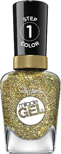 Add a dazzling touch of gold glamour with Sally Hansen Miracle Gel Nail Polish in 777 Sunken Treasure. This luxurious gold glitter shade delivers a sparkling finish that captures light beautifully, giving your nails a radiant, long-lasting shine without the need for UV light.