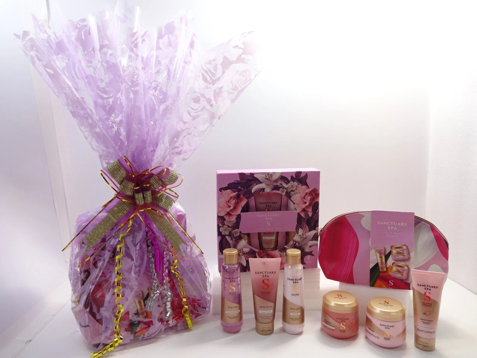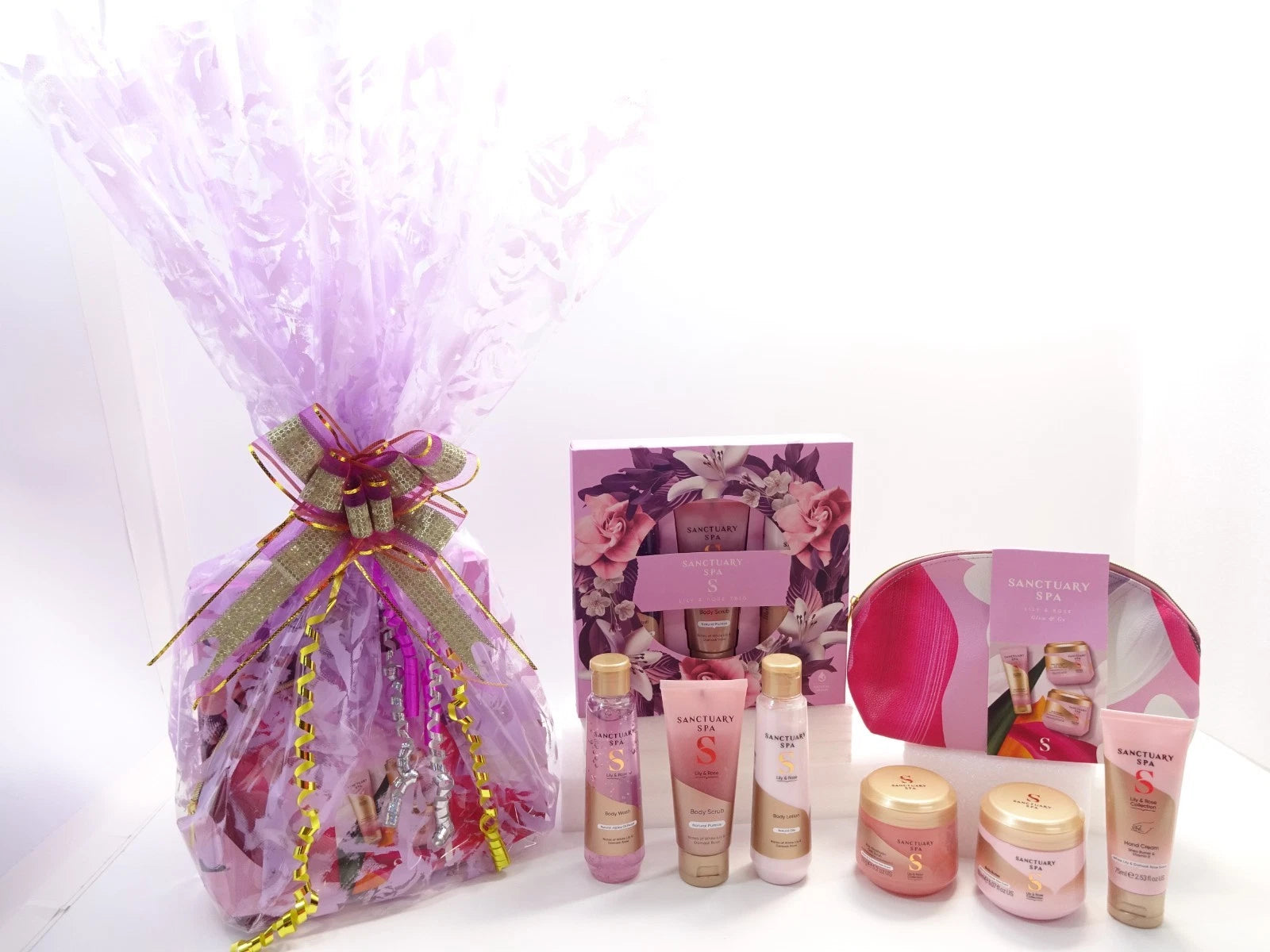 Sanctuary Spa Pamper Hamper Gift for Her – Lily & Rose Trio + Glow & Go Trio Bag Luxury Present Skincare Set