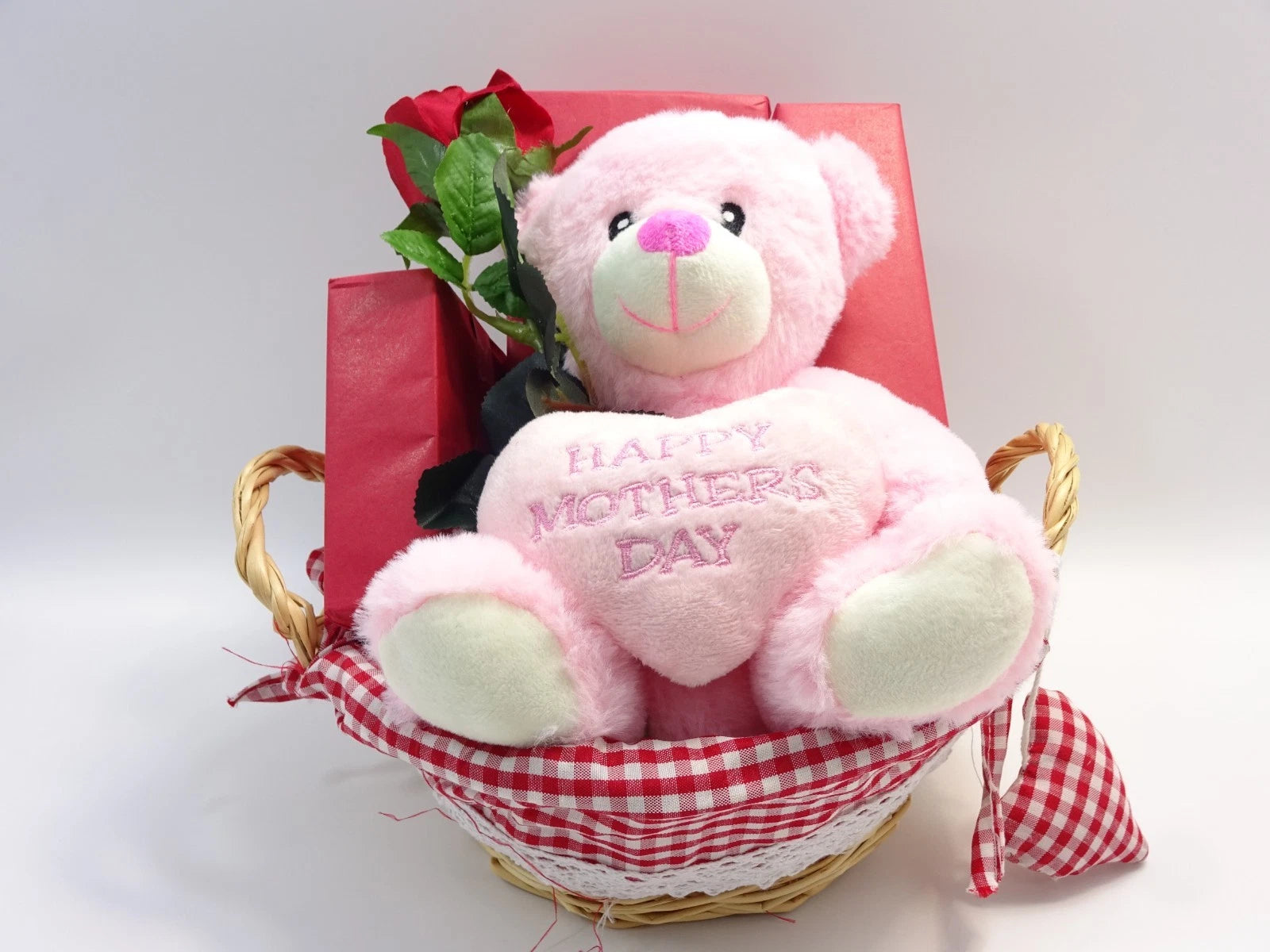 Sentimental keepsake included – “Happy Mother’s Day” teddy bear with decorative rose