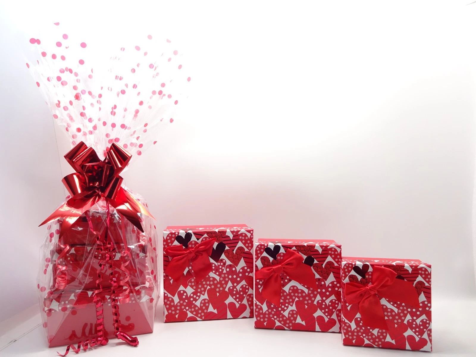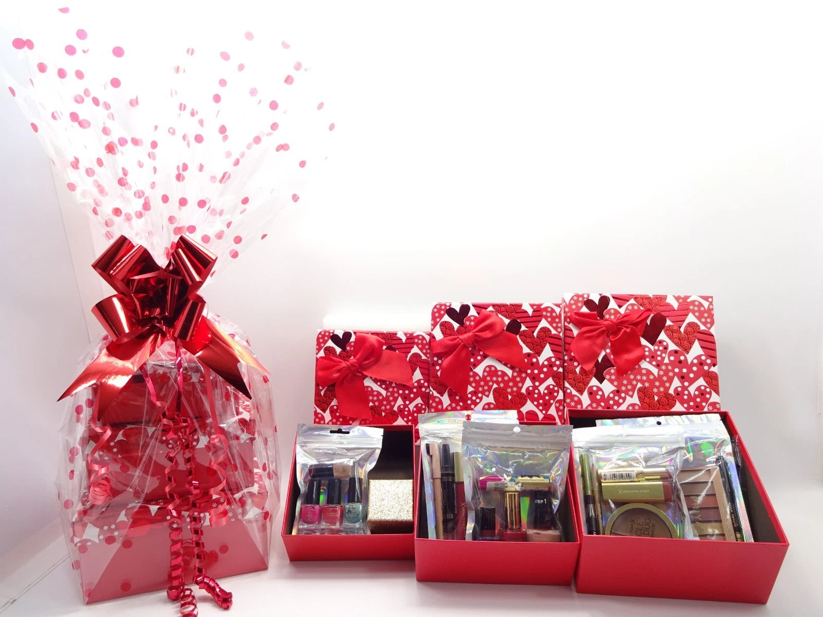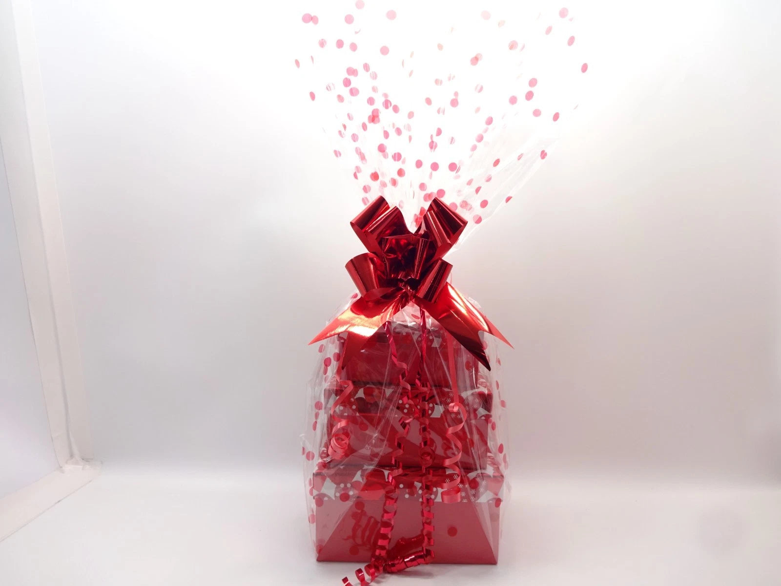 All items are hand-packed and professionally tissue wrapped inside three red heart-printed gift boxes, topped with satin bows and finished in red polka-dot cellophane with a metallic red bow. Hand-assembled by the team at Glory Cosmetics, this luxury hamper embodies beauty, value, and craftsmanship.
